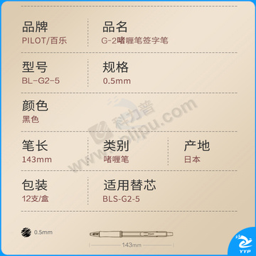 百乐 PILOT 按动啫喱笔 BL-G2-5 0.5mm (黑色) 12支/盒