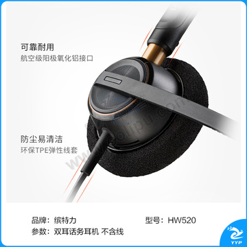 缤特力 专业双耳降噪客服耳机 HW520 适用电话理赔中心/技术支持中心/通讯运营客服中心 不含线 需根据话机配线使用