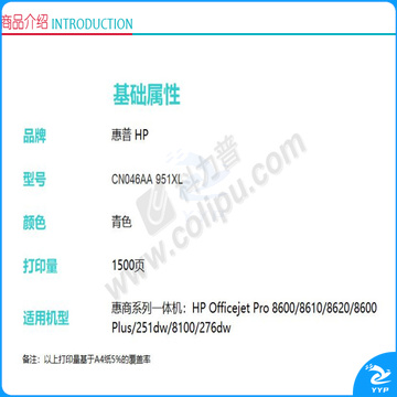 惠普 HP 大容量墨盒 CN046AA951XL (青色)