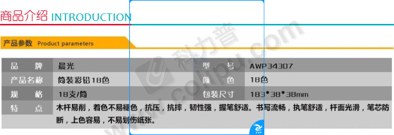 晨光 M&G 18色PP筒装彩色铅笔 AWP34307 (18色) 18支/筒