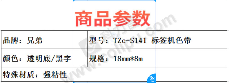 兄弟 brother 标签机色带 TZe-S141 18mm (透明底/黑字) (强粘性)