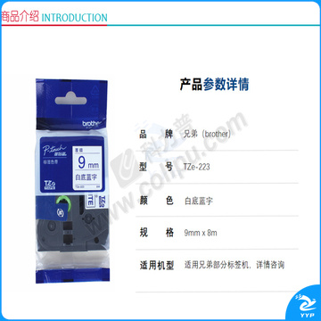 兄弟 brother 标签机色带 TZe-Z223/TZe-223 9mm (白底/蓝字) 仅E115标签机不可用