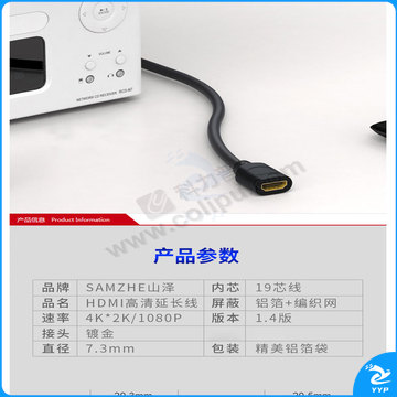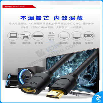 山泽 SAMZHE HDMI线延长线 4K数字高清线 20MN9 公对母转换线 2米