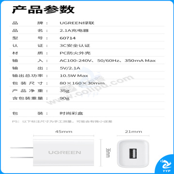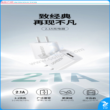 绿联 UGREEN 充电器 5V/2.1A快充插头USB数据线电源适配器 通用苹果ipad平板华为荣耀oppo小米vivo三星安卓手机 60714