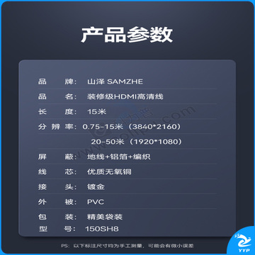 山泽 SAMZHE HDMI线 4K数字高清线 150SH8 15米