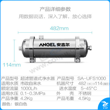 安吉尔 angel 管道式超滤净水器 SA-UFS1000 1000L/h 含标准安装不含辅材