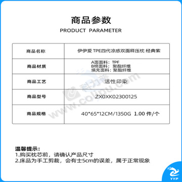伊伊爱 四代TPE双面释压枕 ZX0XK02300125 40*65*12cm 1350g/个 (经典紫) (袋)