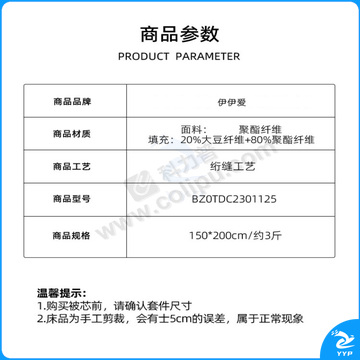 伊伊爱 云柔针织大豆秋冬被 BZ0TDC2301125 150*200cm总重3斤 面料:100%聚酯纤维 填充:20%大豆纤维+80%聚酯纤维 (本白) 袋装