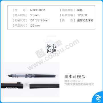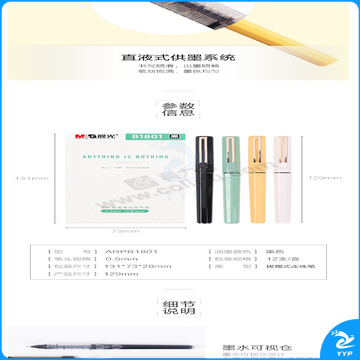 晨光 M&G 拔帽初色直液式全针管中性笔 ARPB1801 0.5mm (黑色) 12支/盒 (笔杆混色)