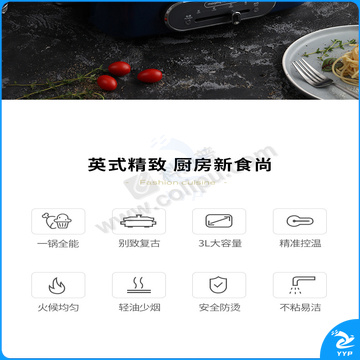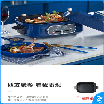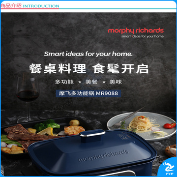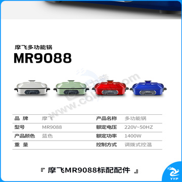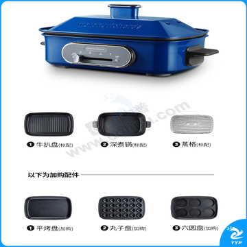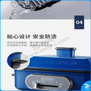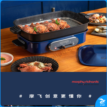 摩飞电器 Morphyrichards 多功能锅 MR9088 高配配置:深锅+牛扒盘+丸子盘+六圆盘+平烤盘+蒸格 ((蓝色))