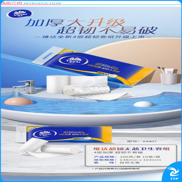 维达 vinda 超韧无芯小卷纸 V4407 四层 100g/卷 10卷/提 12提/箱 (新老包装交替发货)