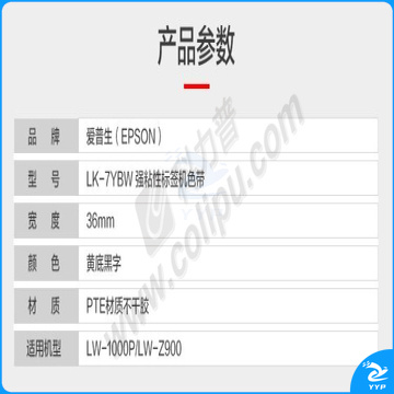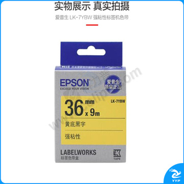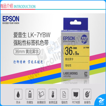 爱普生 EPSON 标签机色带 LK-7YBW 36mm (黄底/黑字) 强粘性