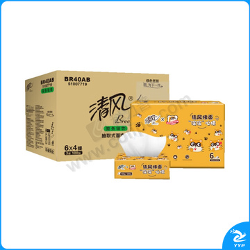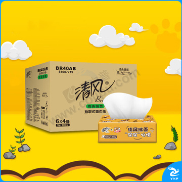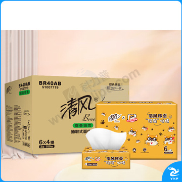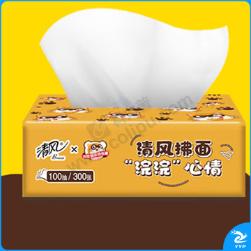 清风 抽纸 卡通小浣熊面巾纸卫生纸抽 3层100抽 24包 整箱 BR40AB