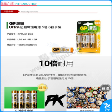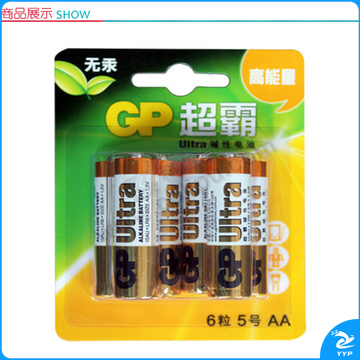 超霸 GP 碱性电池 LR6 5号 1.5V 6节/卡 96卡/箱 新老包装随机发货