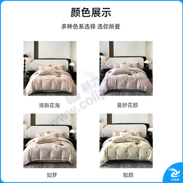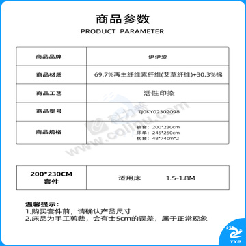 伊伊爱 艾阳绒印花四件套 TJ0KY02302098 200*230cm 被套:200*230cm,床单:245*250cm,枕套:48*74cm*2个 69.7%再生纤维素纤维(艾草纤维)+30.3%棉 (清新花海) 盒装