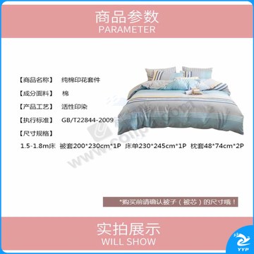 婵思 CHANSI 全棉条纹青春律动床上四件套 SDHJC230044 200*230cm(被套:200*230cm 床单:230*245cm 枕套:48*74cm*2) (全棉/盒)