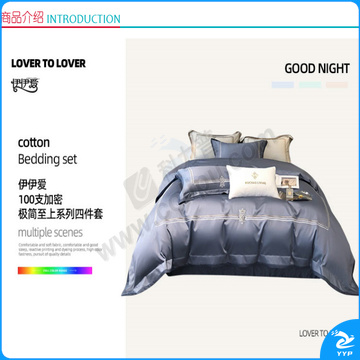 伊伊爱 简至上100S四件套 TJ0HJC2301997 200*230cm(被套:200*230cm 床单:245*250cm 枕套:48*74cm*2) (海湾兰) (全棉/盒)