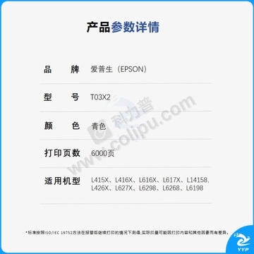 爱普生 EPSON 墨水瓶 T03X2 002 70ml 6000页 (青色)