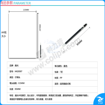 晨光 M&G 专用中性替芯 MG0097 0.5mm (黑色) 20支/盒 (适用于GP0097型号中性笔)