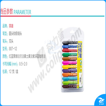 英雄 HERO 12色细头记号笔套装 887-12 双头 12支/套 12支/盒 塑料 混色