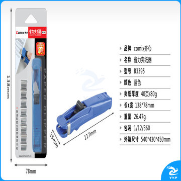 齐心 B3395 夹纸器/推夹器/票夹器(中号) 蓝
