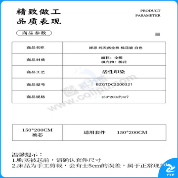 婵思 CHANSI 纯天然全棉棉花被 BZGTDC2000321 150*200cm 约2000g/条 填充成分:棉花 (袋)