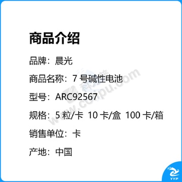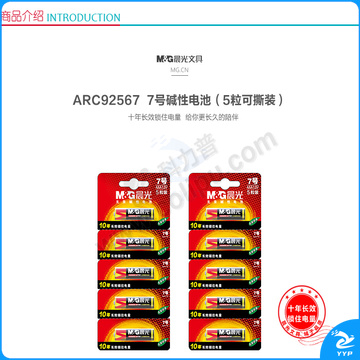 晨光 M&G 7号碱性电池 ARC92567 5粒/卡 10卡/盒 100卡/箱 可撕装