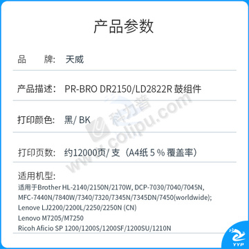 天威 PRINT-RITE 碳粉盒 PR-BRO DR2150/LD2822R 鼓组件 TFB227BPEJ 12000页 (黑色) 专业装