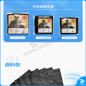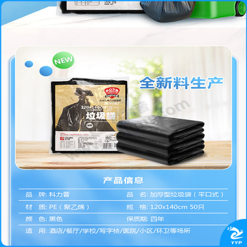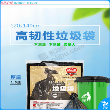 科力普 COLIPU 加厚型垃圾袋 平口式 120cm*140cm 1.5s (黑色) 50只/包 6包/箱
