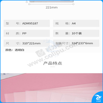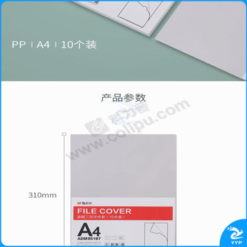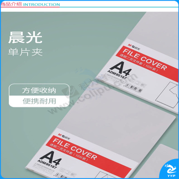 晨光 M&G L型 单片夹 ADM95187 二页文件套 A4 (透明白) 10个/包