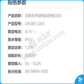 贝医生 DR·BEI 声波电动牙刷 DR.BEI C6X 长180mm;宽30mm;高30mm (仙本那白)