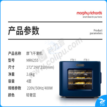 摩飞电器 Morphyrichards 干果机 MR6255 2.6kg (蓝色) 220v 50hz