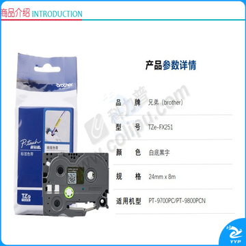 兄弟 brother 标签机色带 TZe-FX251 24mm (白底/黑字) (线缆标签)