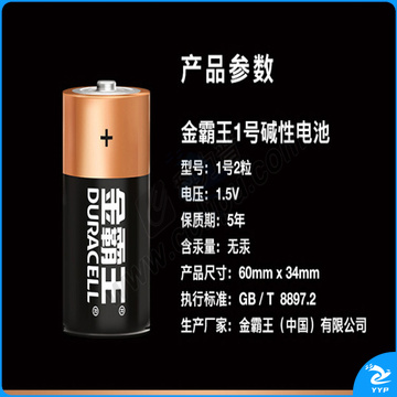 金霸王 1号碱性电池 LR20 1.5V 2节/卡 12卡/盒 2盒/箱