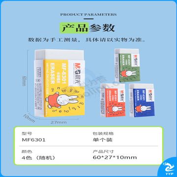 晨光 M&G 米菲方型四色橡皮 MF6301 60*27*10mm (混色) 32块/盒 (颜色随机)