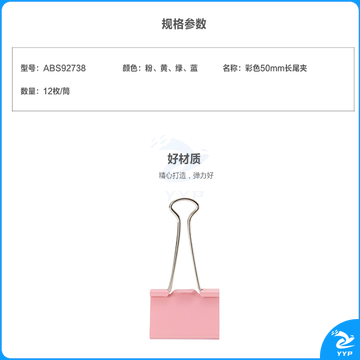 晨光ABS92738 彩色长尾夹 50mm 12枚/筒