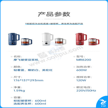 摩飞电器 Morphyrichards 多功能破壁豆浆机 MR8200 600W 600ml (轻奢蓝)
