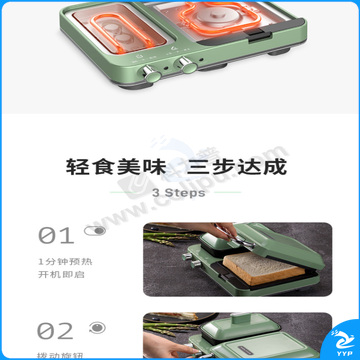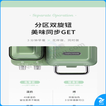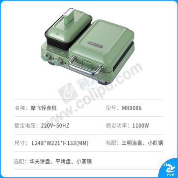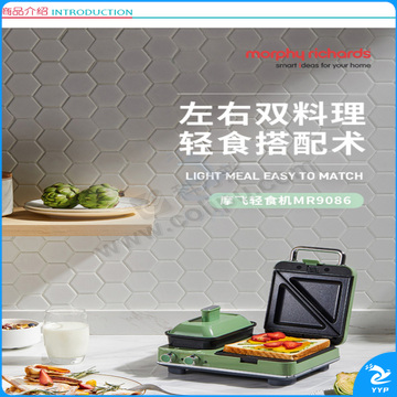 摩飞电器 Morphyrichards 轻食机 (蒸锅三文治机) MR9086 1100W (薄荷绿)