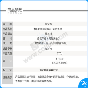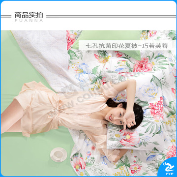 富安娜 FUANNA 七孔抗菌印花夏被 巧若芙蓉 203*229cm 370g/条 (绿色) (礼袋)