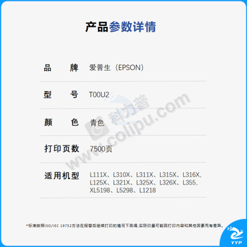 爱普生 EPSON 墨水瓶 T00U2 004 打印量7500页 (青色)