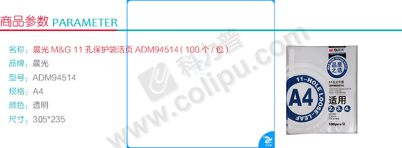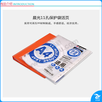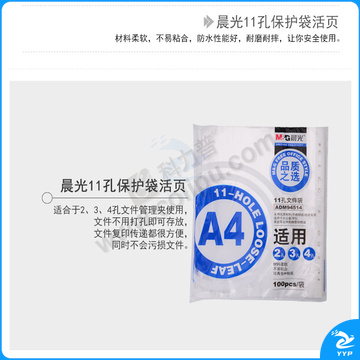 晨光 M&G 11孔文件保护套 ADM94514 A4 (透明色) 100个/包 文件袋 235×305 PP
