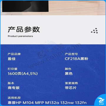 盈佳 INK CARTRIDGE 碳粉盒 CF218A 1600页 (黑色) 商专版 带芯片 鼓粉分离