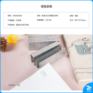 晨光 23/23号厚层订书钉 易穿透订书针 重型订书钉1000枚/盒 5盒装ABS92628
