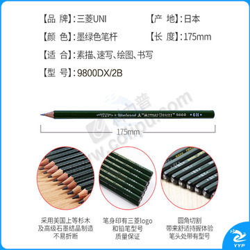 三菱 uni 铅笔 9800DX/2B (黑色) 12支/盒