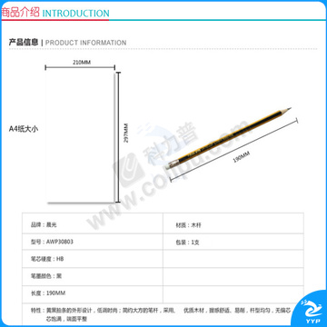 晨光 M&G 黄黑色抽条笔杆HB铅笔 AWP30803 12支/小盒