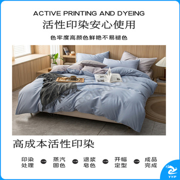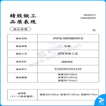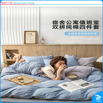 伊伊爱 宿舍公寓值班室双拼纯棉四件套 TJ0JD02201639 200*230cm(被套:200*230cm 床单:245*245cm 枕套:48*74cm*2) (浅蓝+浅灰) (全棉/盒)