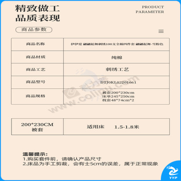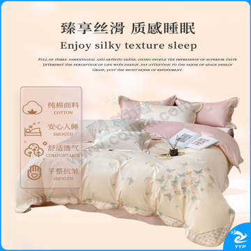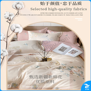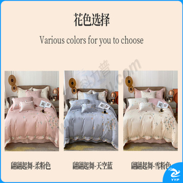 伊伊爱 翩翩起舞刺绣100支全棉四件套 DTJ0KL02201661 200*230cm(被套200*230cm 床单245*250cm 枕套48*74cm*2)面料:100%棉 花型随机发货(雪粉色、柔粉色、天空蓝) 礼盒装