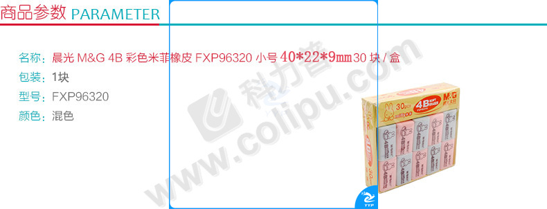 晨光 M&G 4B米菲橡皮 FXP96320 40*22*9mm (混色 蓝粉随机) 30块/盒