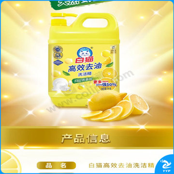 白猫 高效去油洗洁精 柠檬清香 2kg/瓶 8瓶/箱 按压式