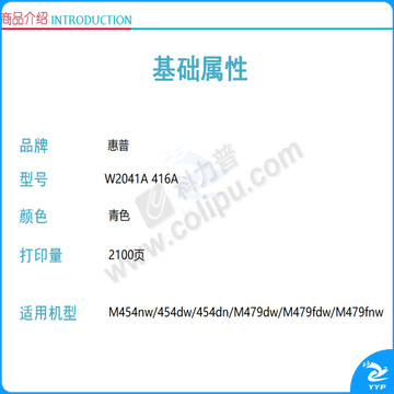 惠普 HP 硒鼓 W2041A 416A 2100页 (青色)